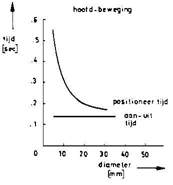 doelgrootte afhangen. De positioneringstijd is echter sterk afhankelijk van de doelgroottediameter. Het blijkt dat bij kleine